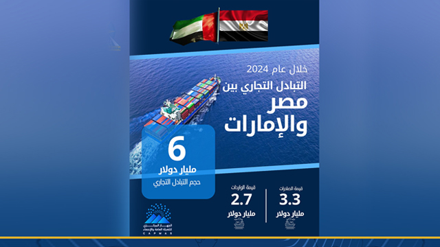 أعلن الجهاز المركزي للتعبئة العامة والإحصاء عن ارتفاع حجم الصادرات المصرية للإمارات إلى 3.3...