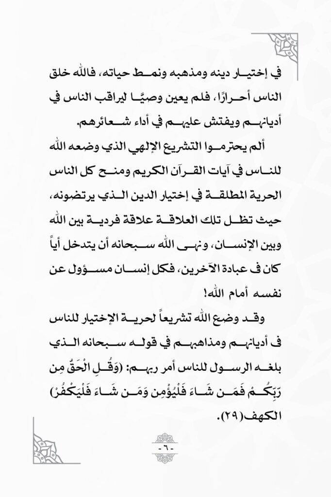 ألم يحترموا التشريع الإلهي الذي وضعه الله للناس في آيات القرآن الكريم ومنح كل الناس الحرية المطلقة في إختيار الدين الذي يرتضونه، حيث تظل تلك العلاقة علاقة فردية بين الله وبين الإنسان، ونهى الله سبحانه أن يتدخل أياً كان فى عبادة الآخرين، فكل إنسان مسؤول عن نفسه أمام الله!